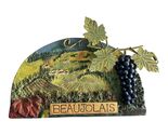 A detailed wall plaque designed from the original artwork of **Carol Rowan**, licensed by **Wild Apple Licensing**. This piece features a **textured vineyard landscape** with a raised cluster of grapes and vine leaves, capturing the beauty of France?s Beaujolais wine region. Crafted with dimensional relief and painted details, it?s a charming piece for wine lovers or French country decor enthusiasts.