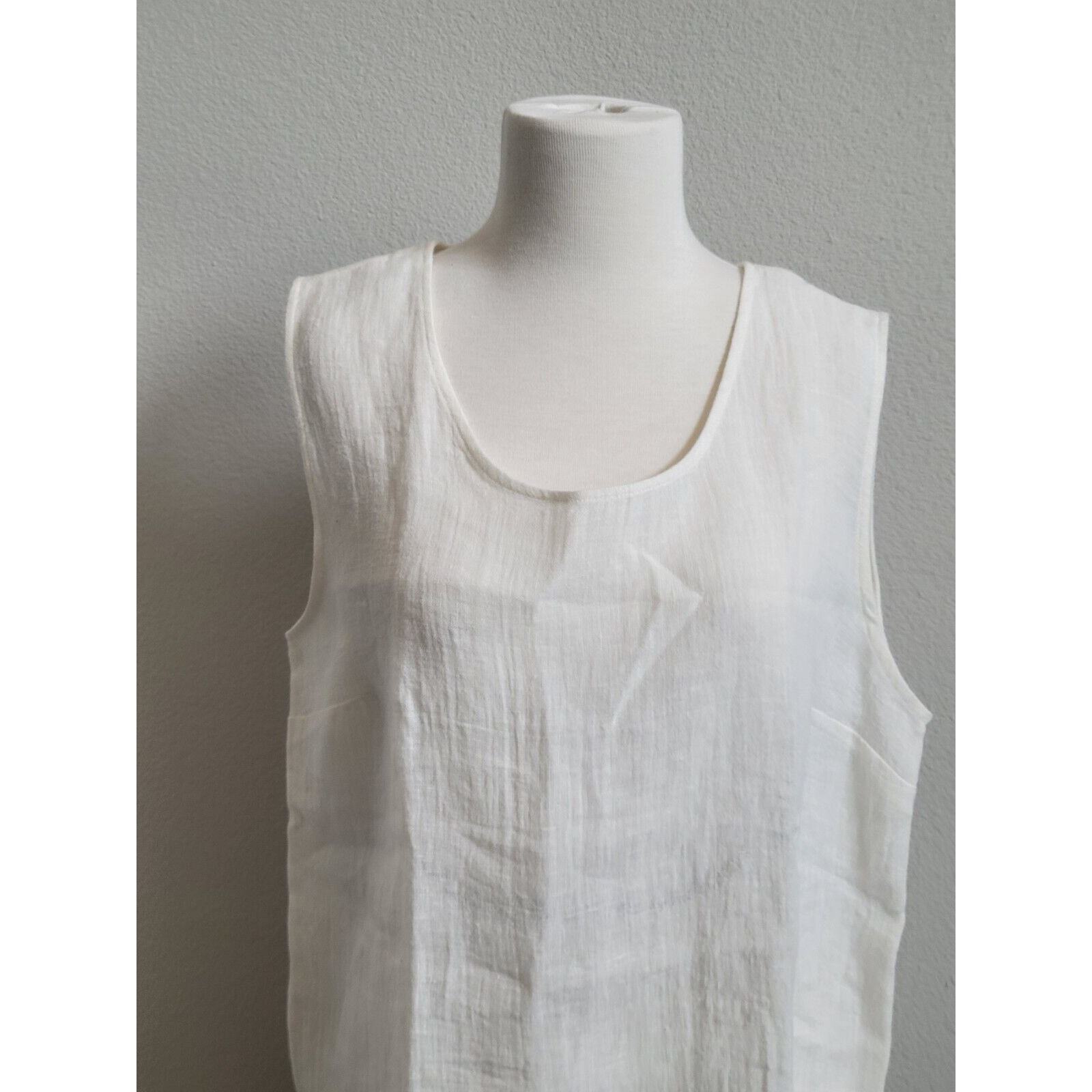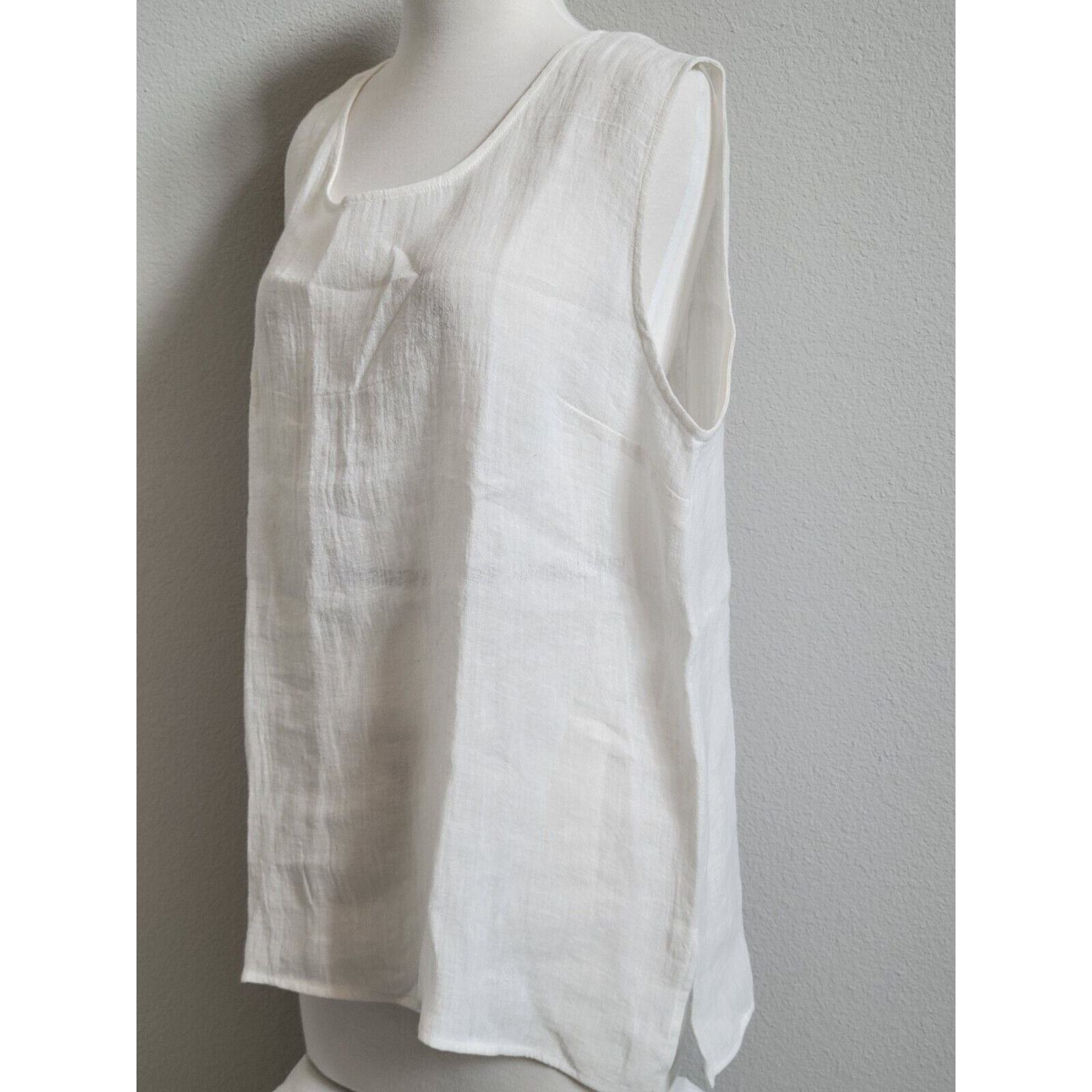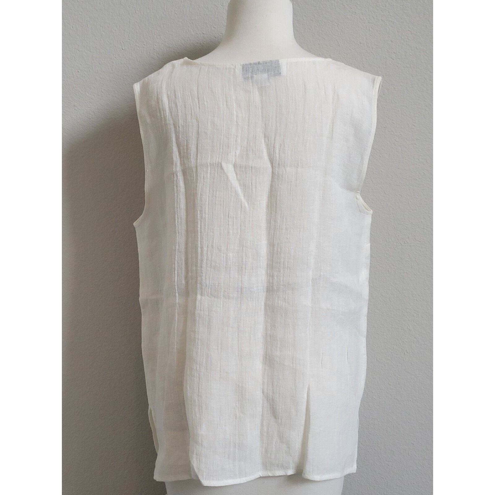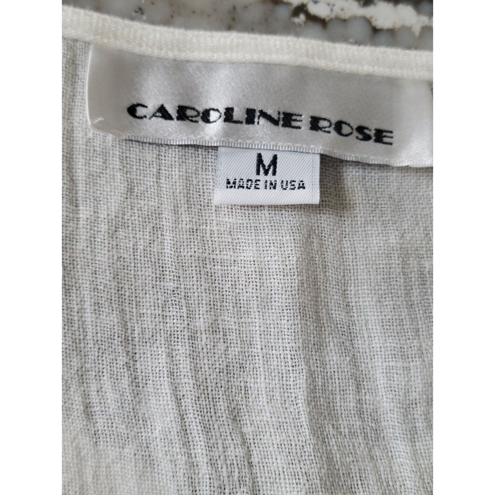 Meausurements Pit to Pit 20" Shoulder to Hem 25.5" This Caroline Rose Linen Women's Ivory Essential Basic Knit Jersey Tank Top in size Medium is the perfect addition to any wardrobe. The sleeveless design and relaxed fit make it comfortable for everyday wear, while the round neck and pullover closure add a touch of simplicity to the style. Made from high-quality linen knit fabric, this tank top is machine washable and easy to care for. The ivory color and basic style make it versatile for any occasion, while the United States origin ensures both quality and durability. Add this Caroline Rose tank top to your collection today!