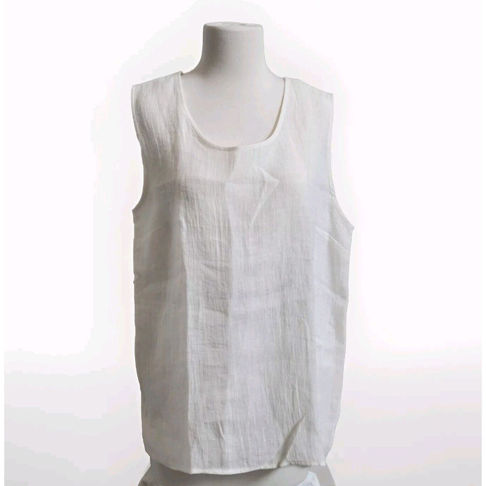Caroline Rose Linen Women's Ivory Essential Basic Knit Jersey Tank Top Sz Medium