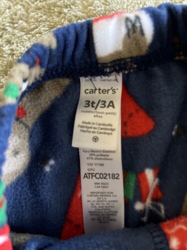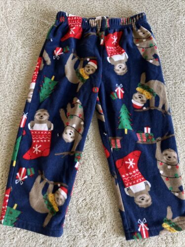 Carters Boys Blue Santa Stocking Presents Sloth Christmas Fleece Pajama Pants 3T.