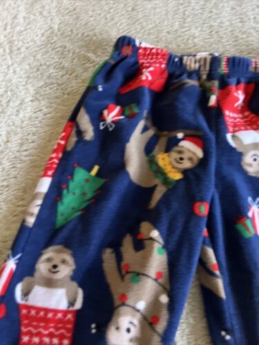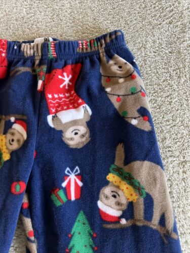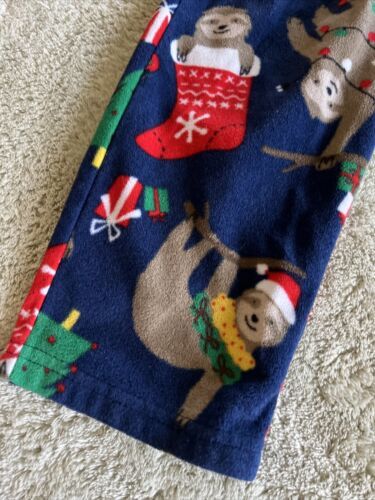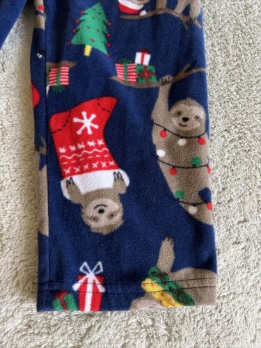 - Carters Boys Blue Santa Stocking Presents Sloth Christmas Fleece Pajama Pants 3T
