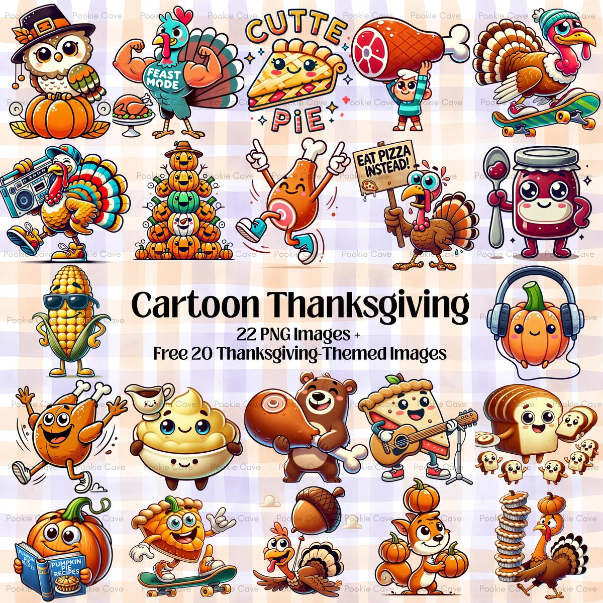 Bring joy and laughter to the season with this Cartoon Thanksgiving PNG Bundle. Featuring cute and funny holiday characters, this playful collection is perfect for kids’ crafts, family projects, and whimsical seasonal designs.