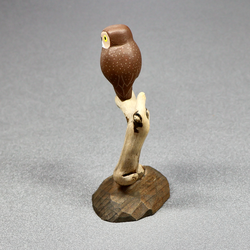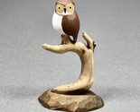 Carved Wooden Owl Miniature Figurine Driftwood Tree 4.5 Inch Handcrafted