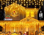 ?Luces de carambano para exteriores?400 luces LED de Navidad de color blanco calido de longitud total es de 43 pies, incluyendo luces de carambano de 33 pies y cable de extension de 10 pies. Las luces de Navidad para exteriores se pueden conectar hasta 3 juegos para decorar areas mas grandes, adecuadas para su uso durante todo el año: cumpleaños, aniversarios, decoracion de Navidad. Las luces de carambano conectables se pueden controlar con un boton en el adaptador de corriente. Cuelga estas luces de cadena de hadas al aire libre en interiores para crear un ambiente calido y romantico para ti. 8 modos de iluminacion y funcion de memoria: las luces LED de Navidad con 8 modos de iluminacion diferentes: combinacion, en ondas, secuencial, persecucion/flash, desvanecimiento lento, parpadeo/flash y encendido constante. Puede configurar diferentes modos mediante el boton en el adaptador de corriente. El diseño de funcion de memoria hace que la tira de luces parpadeantes se recupere del modo de configuracion anterior cuando reinicies la tira de luces la proxima vez. Resistente al agua y con certificacion UL: las luces de carambano de Navidad son impermeables IP44, perfectas para decoracion exterior y pueden funcionar normalmente incluso en viento, lluvia, lluvia helada, nieve pesada y temperaturas frías heladas. Estas luces de Halloween estan aprobadas por UL, el voltaje de salida es de 29 V, es completamente seguro al tacto. Estas luces LED de carambano estan hechas de alambre de cobre 100% premium y no se sobrecalientan incluso despues de un uso prolongado. ?Facil de instalar y amplia aplicacion?Los cables de las luces de Navidad de carambano son transparentes y sin enredos, no se tuercen, muy faciles de instalar y son mas ligeros que las luces de Navidad tradicionales. Estas luces de carambano son perfectas para exteriores, interiores, baño, pasamanos, valla, balcon, jardín, línea de techo, decoracion de barandilla de cubierta.