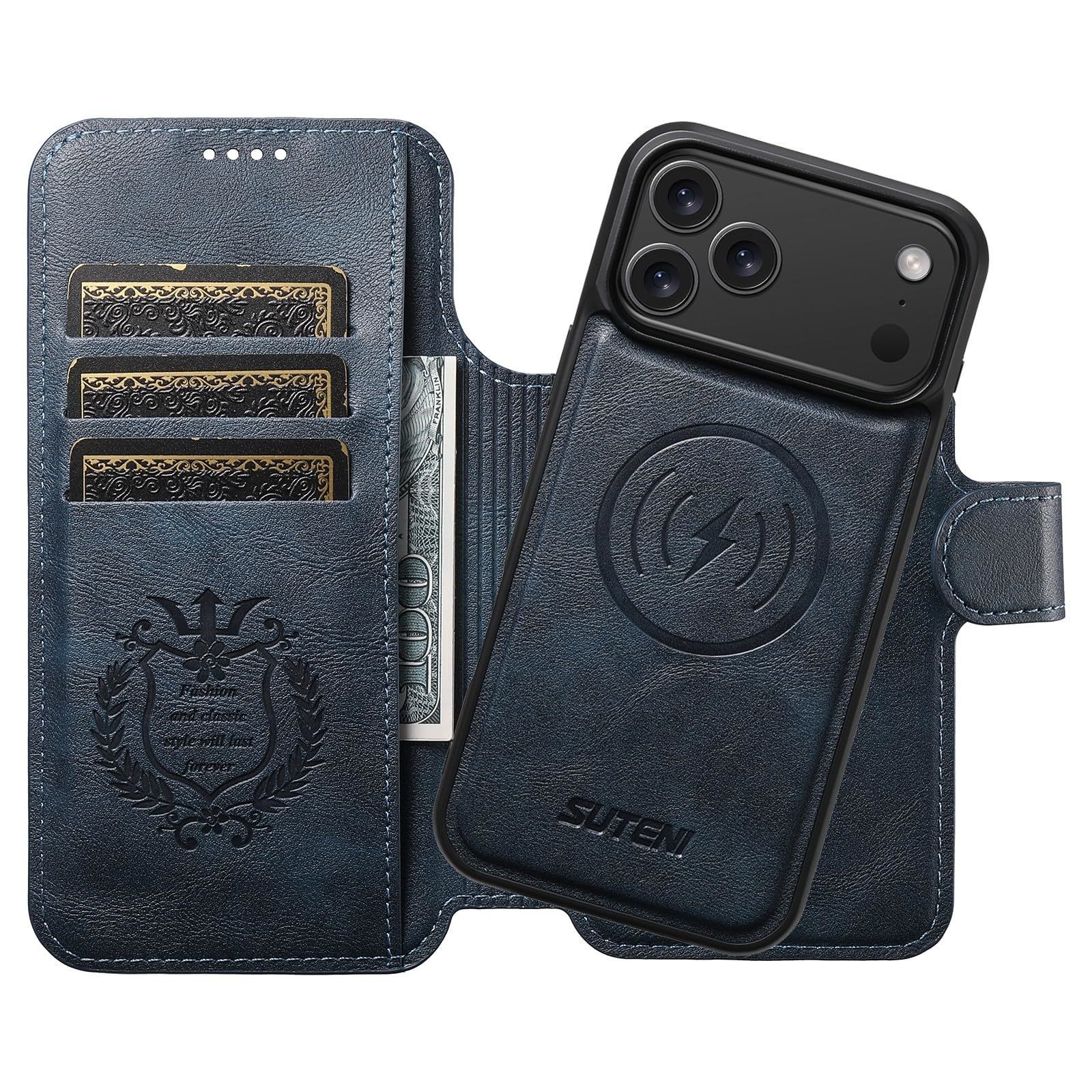 - Case for iPhone 15 Plus (Color: Blue) Removable Design Wallet Leather Magnetic F