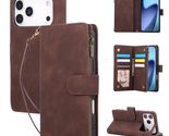 - Case for iPhone 16 Plus (Color: COFFEE) Flip Zipper Leather Wallet Back Case