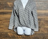 - Caslon Top Women Sm Gray Pink Striped Faux Wrap Hi low Knotted Front Long Sleeve