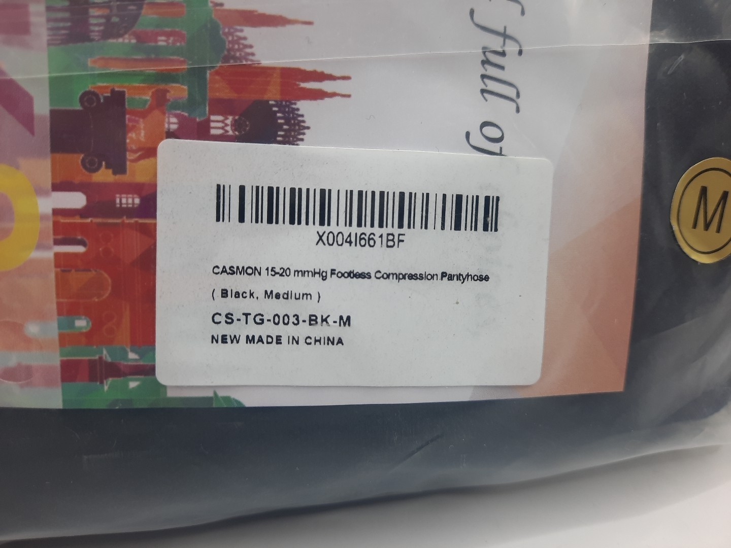 Primary image for Casmon Compression Pantyhose Black Size Medium 15-20mmHg Ankle Length ▪︎TWO▪︎