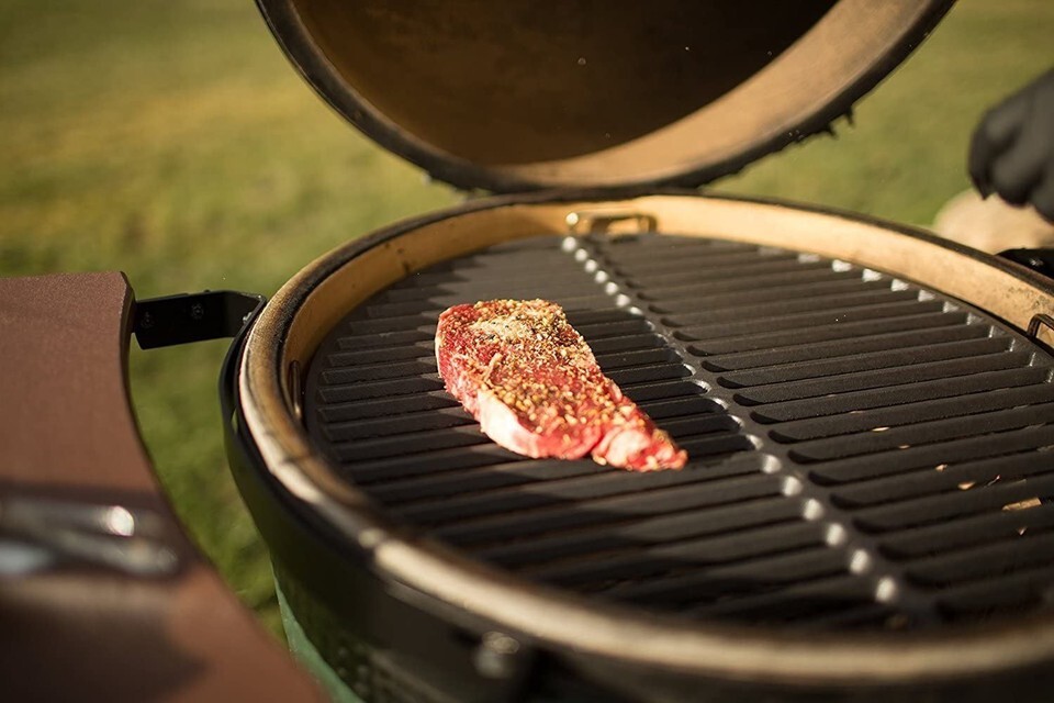 ?Heavy Duty Cast Iron Grate?This 15" cooking grate made of high density cast iron,It can withstand higher temperatures than normal grate and produces superior heat surface for searing meat,Cast Iron gives off a more even heat and holds it far longer than steel;The actual Diameter 14.8 inches- Fits most Medium Egg kamado grills