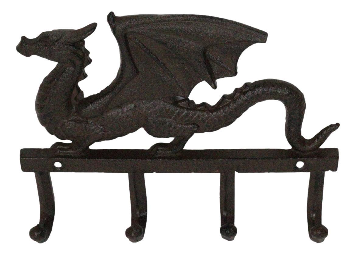 - Cast Iron Legends Fantasy Sentinel Guardian Dragon 4 Pegs Wall Keys Hats Hook