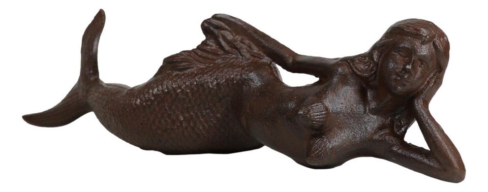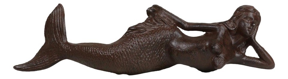 - Cast Iron Rustic Nautical Siren Mermaid In Repose On Ocean Bed Sculpture 13"L