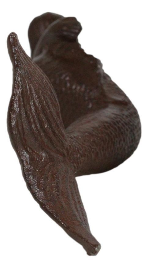 Cast Iron Rustic Nautical Siren Mermaid In Repose On Ocean Bed Sculpture 13"L
