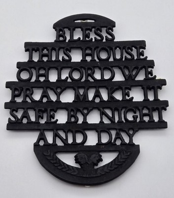 Primary image for Cast Iron Trivet Bless This House Prayer Vintage Kitchen Wall Decor