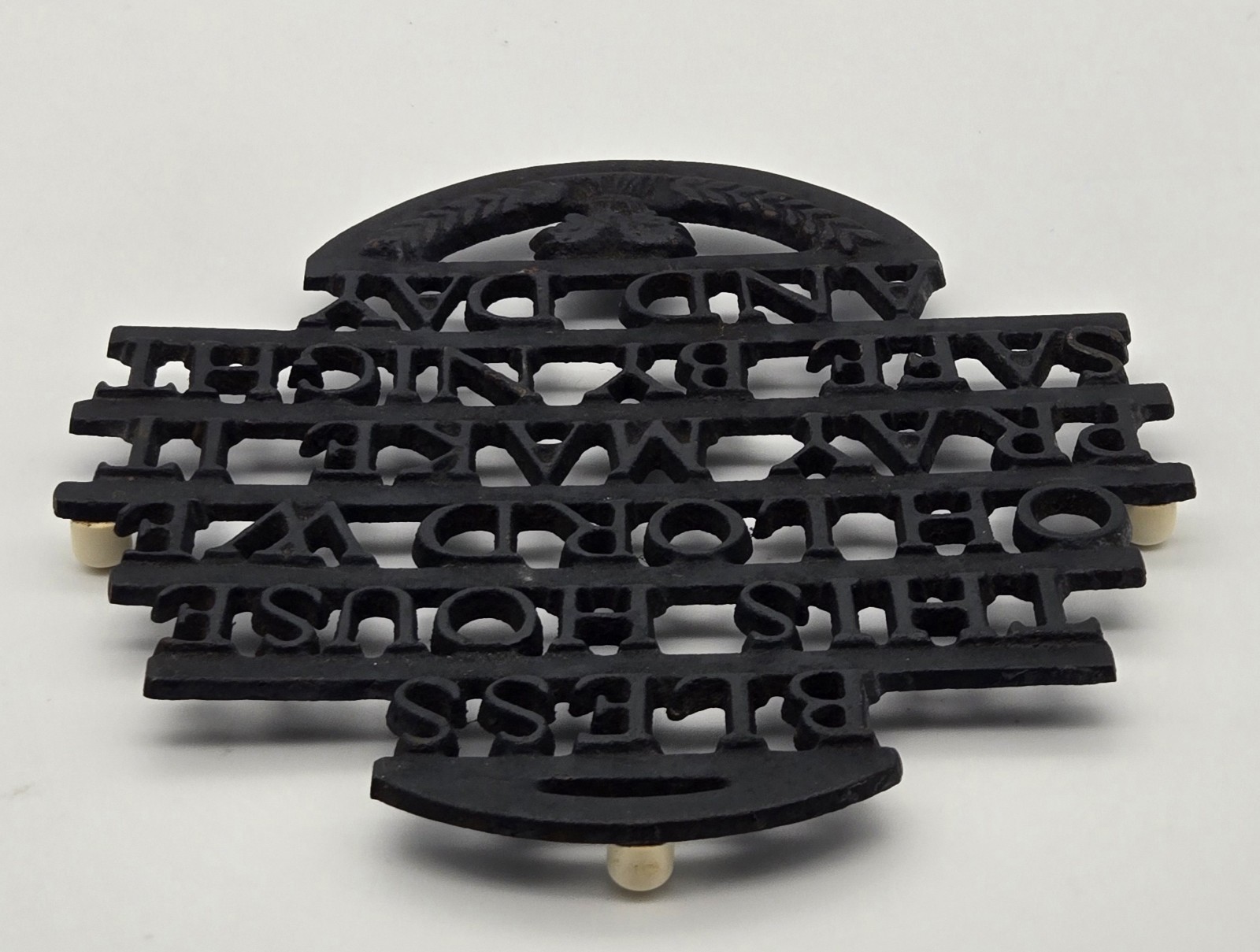 Cast Iron Trivet Bless This House Prayer Vintage Kitchen Wall Decor