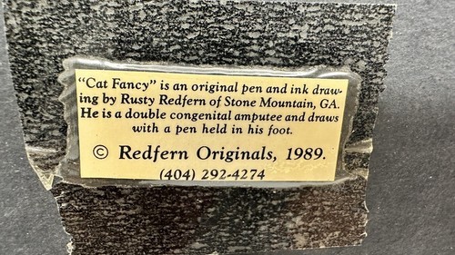 This drawing by Rusty Redfern titled "Cat Fancy" is a beautiful piece of art that any cat lover would appreciate. The small-sized licensed reproduction is made of paper and features adorable cats as the main subject. The artist's attention to detail is evident in the intricate lines and strokes used to bring the feline characters to life.