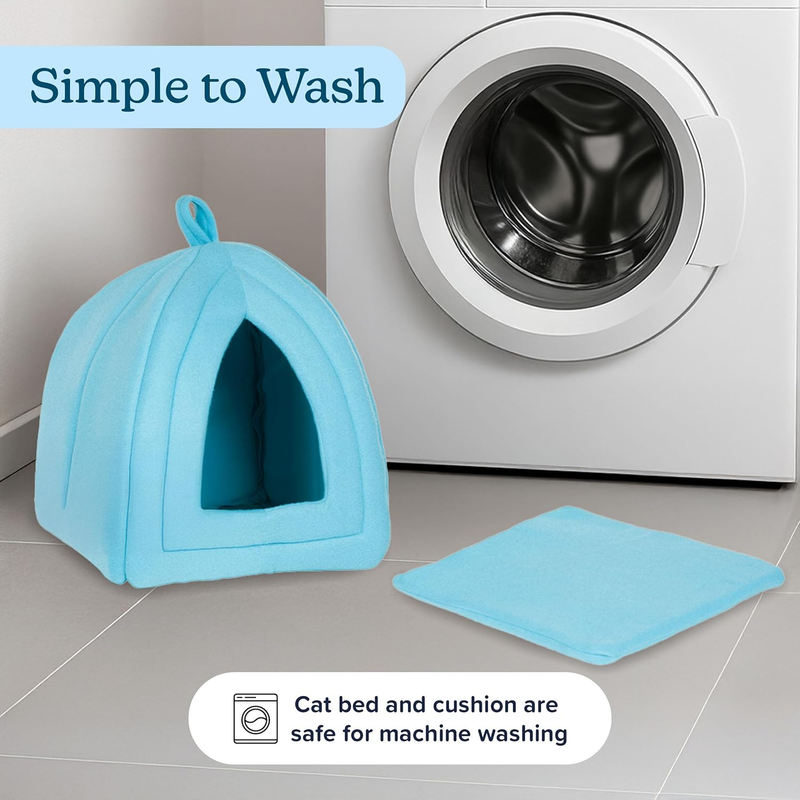 Cat House - Indoor Bed with Removable Foam Cushion - Pet Tent for Puppies, Rabbits, Guinea Pigs, Hedgehogs, and Other Small Animals by (Blue)