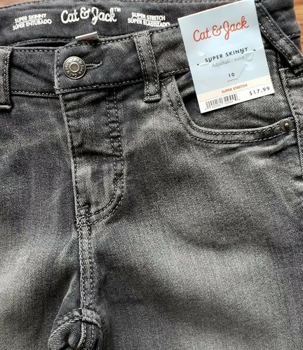 This sale is for a pair of Cat Jack Brand Jeans/Pants Charcoal Grey Jeans Have a Pleated Hem (please see photos) Girl's Size 10 Super Skinny ~ Super Stretch Machine Wash ~ Tumble Dry Adjustable Waistband Pants are Grey in Color Snap zipper front closure Five (5) pocket jeans Five (5) belt loops around outside waistband Pants are brand new with tags, $17.99 Please view photos for a good description of these pants. Thank you!