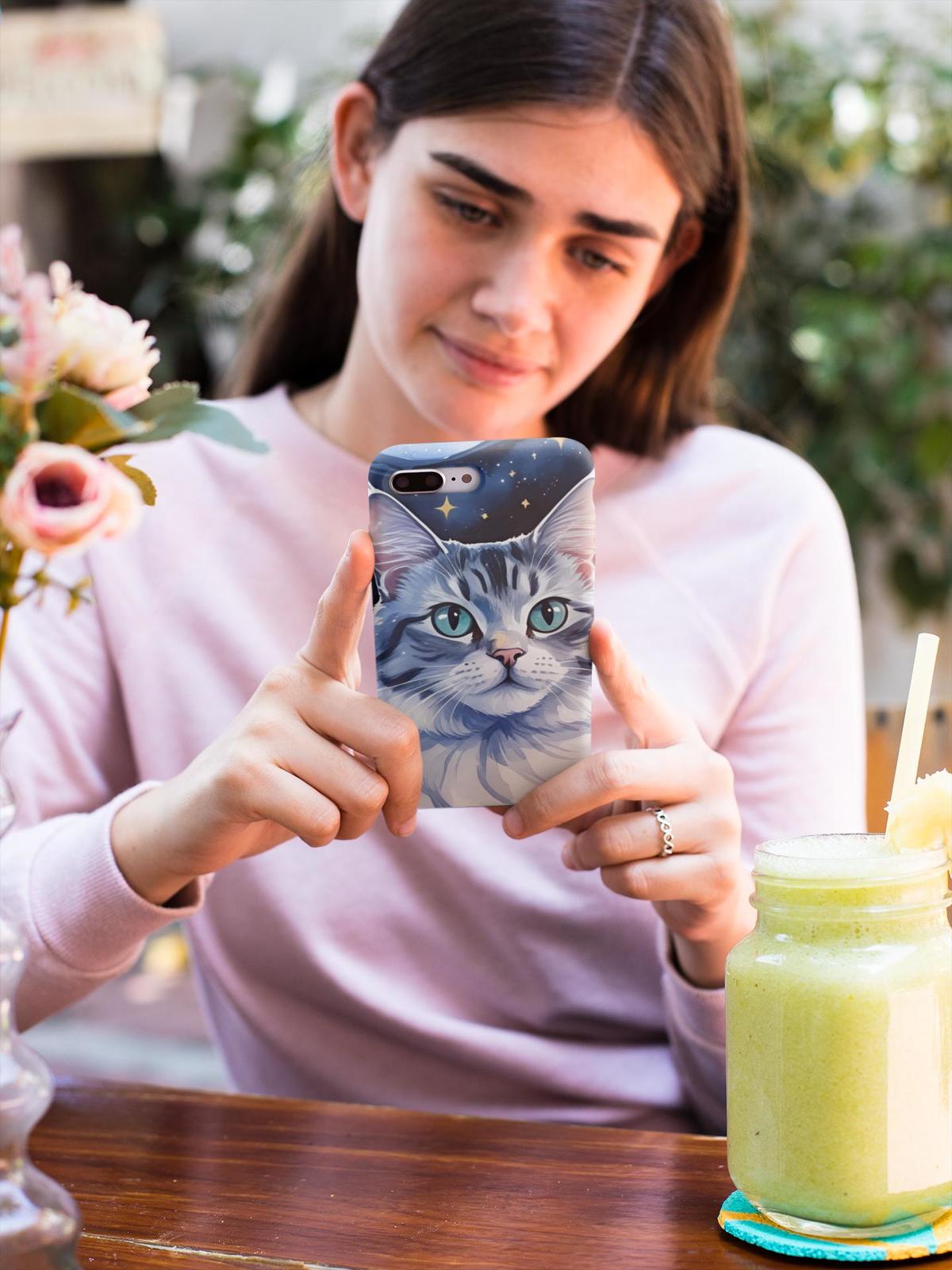 - Cat Lover Durable Phone Case, Cosmic Cat Phone Cover, Gift for Cat Owners