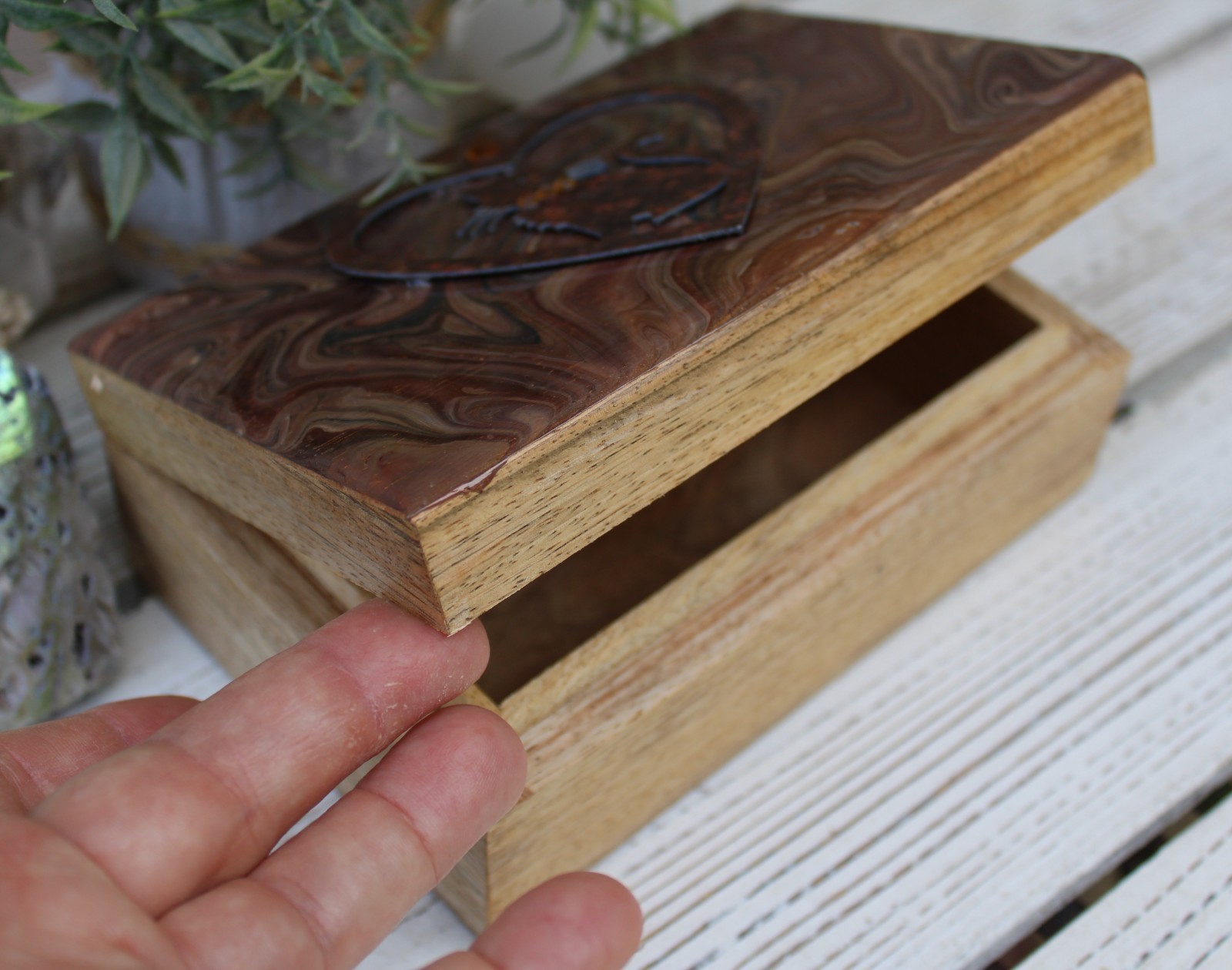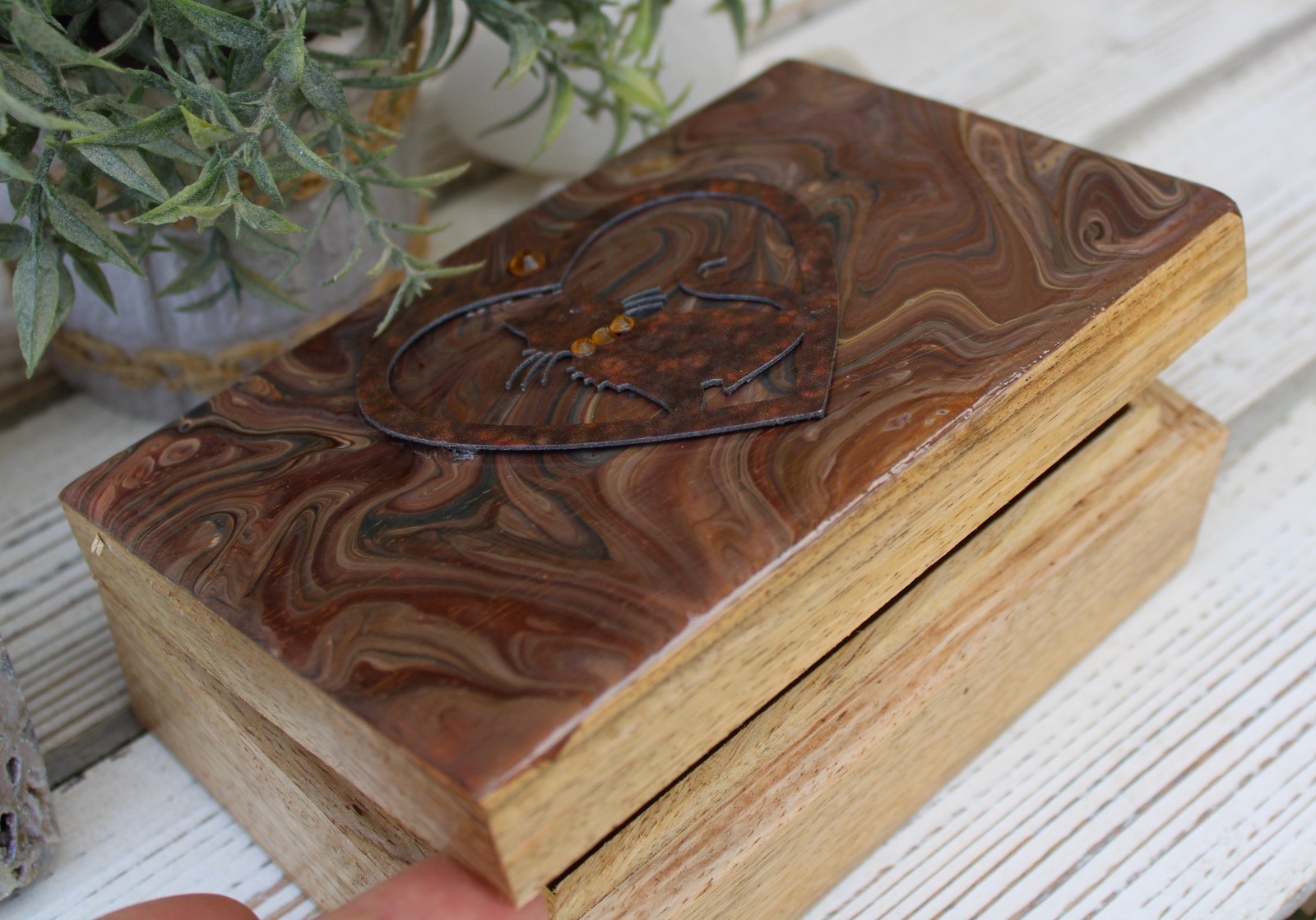 This is a Memorial Urn for your beloved Cat. It measures 6" x 4" x 2.5". I created it using the acrylic pour method, so no two will ever be alike. This Urn box will accommodate the remains for a pet up to 30 pounds.