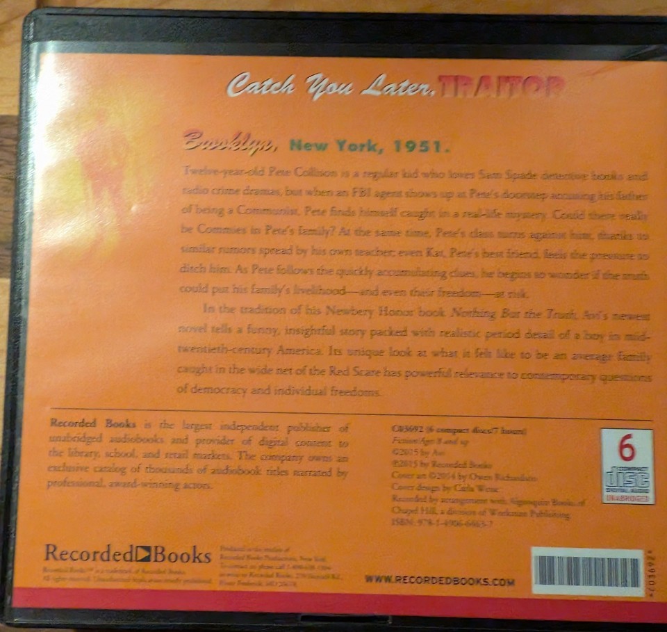 - Catch You Later, Traitor by Avi (Audiobook, 6 CDs) Unabridged, Like New Discs