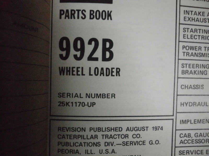 Caterpillar 992B Ruota Carico Parti Libro Manuale Macchiato 25K1170-UP OEM 1974