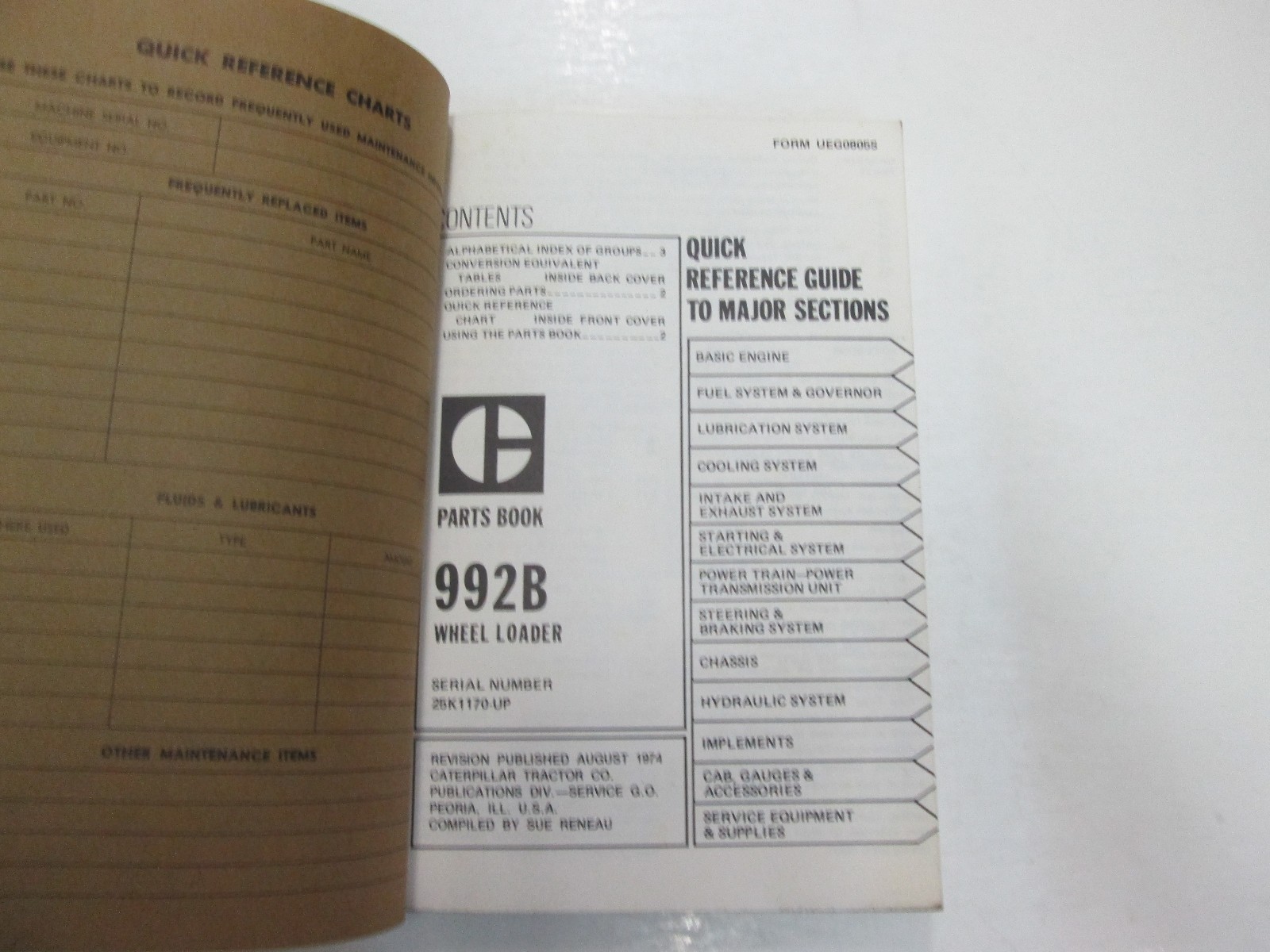 Caterpillar 992B Ruota Carico Parti Libro Manuale Macchiato 25K1170-UP OEM 1974