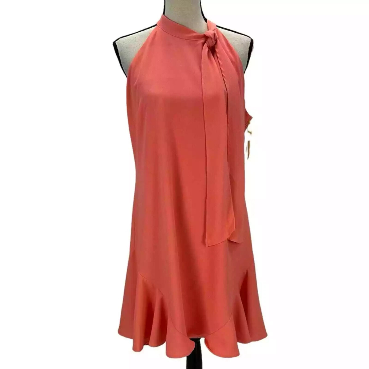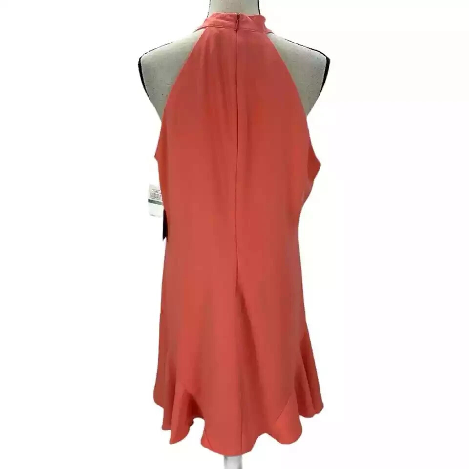 CeCe Sleeveless Halter Neck Knee Length Dress Coral Size XL Hidden Zipper