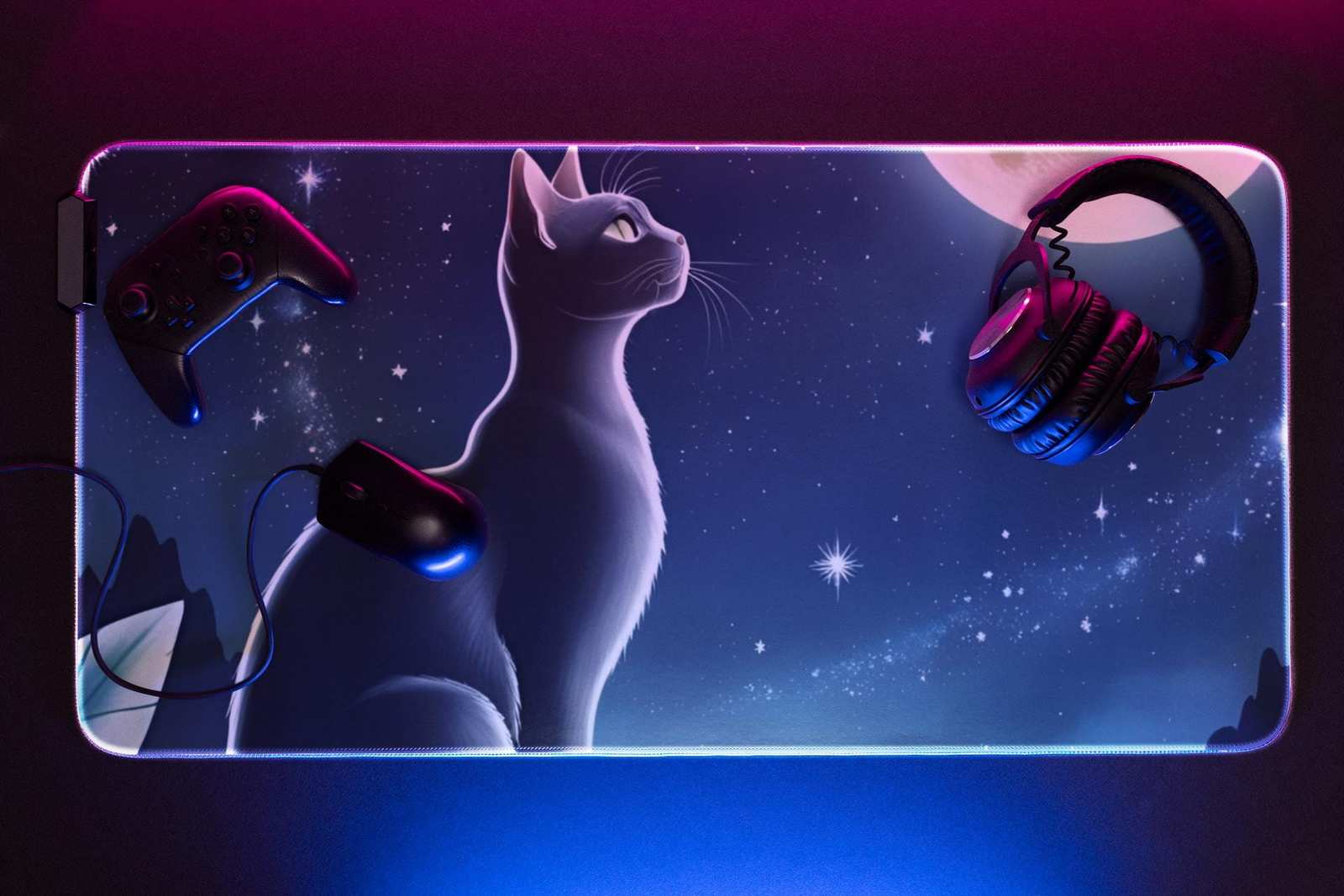 - Celestial Cat Desk Mat, Cosmic Office Mouse Pad, Workstation Accessory, Gaming M
