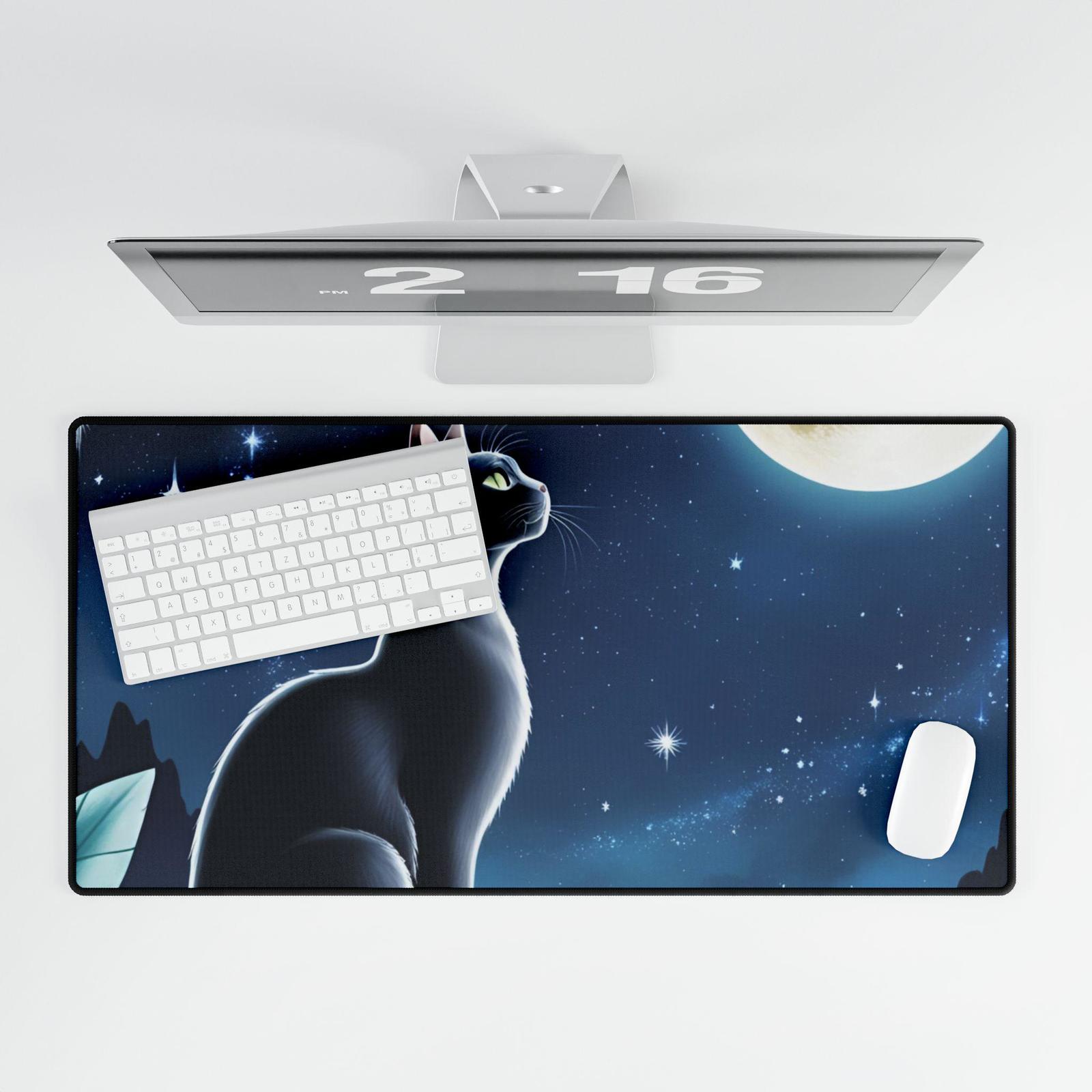 Celestial Cat Desk Mat, Cosmic Office Mouse Pad, Workstation Accessory, Gaming M
