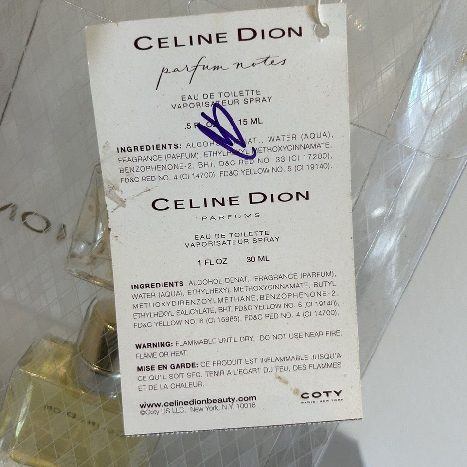 Celine Dion Parfums Gift Bag NWT in original packaging Contains: 1 oz Celine Dion Parfums Eau de Toilette Spray .5 oz Celine Dion Parfum Notes Eau de Toilette Spray Packaging has some minor cosmetic wear due to age as shown in photos. Any questions, please ask. Item will ship securely via USPS Ground Advantage. Any returns must be unopened and unused to be eligible.