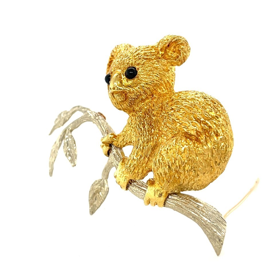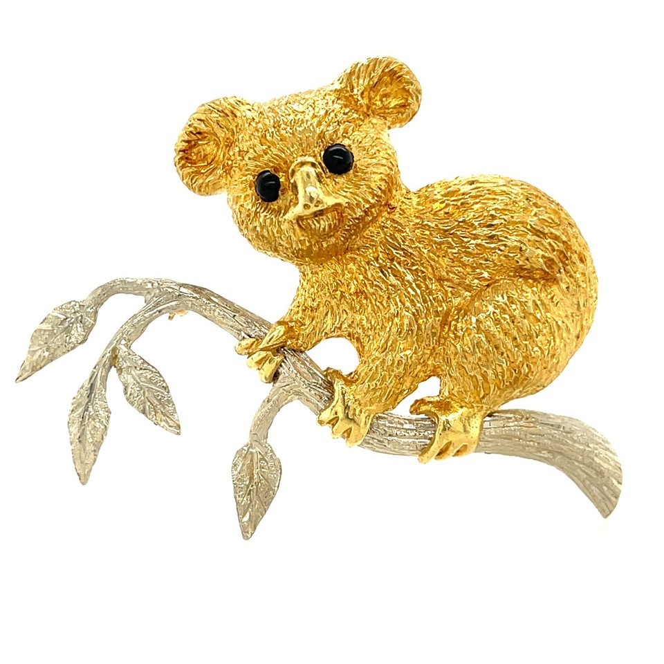 - Cellino 18k Two Tone Gold Koala Brooch with Onyx Accents Vintage
