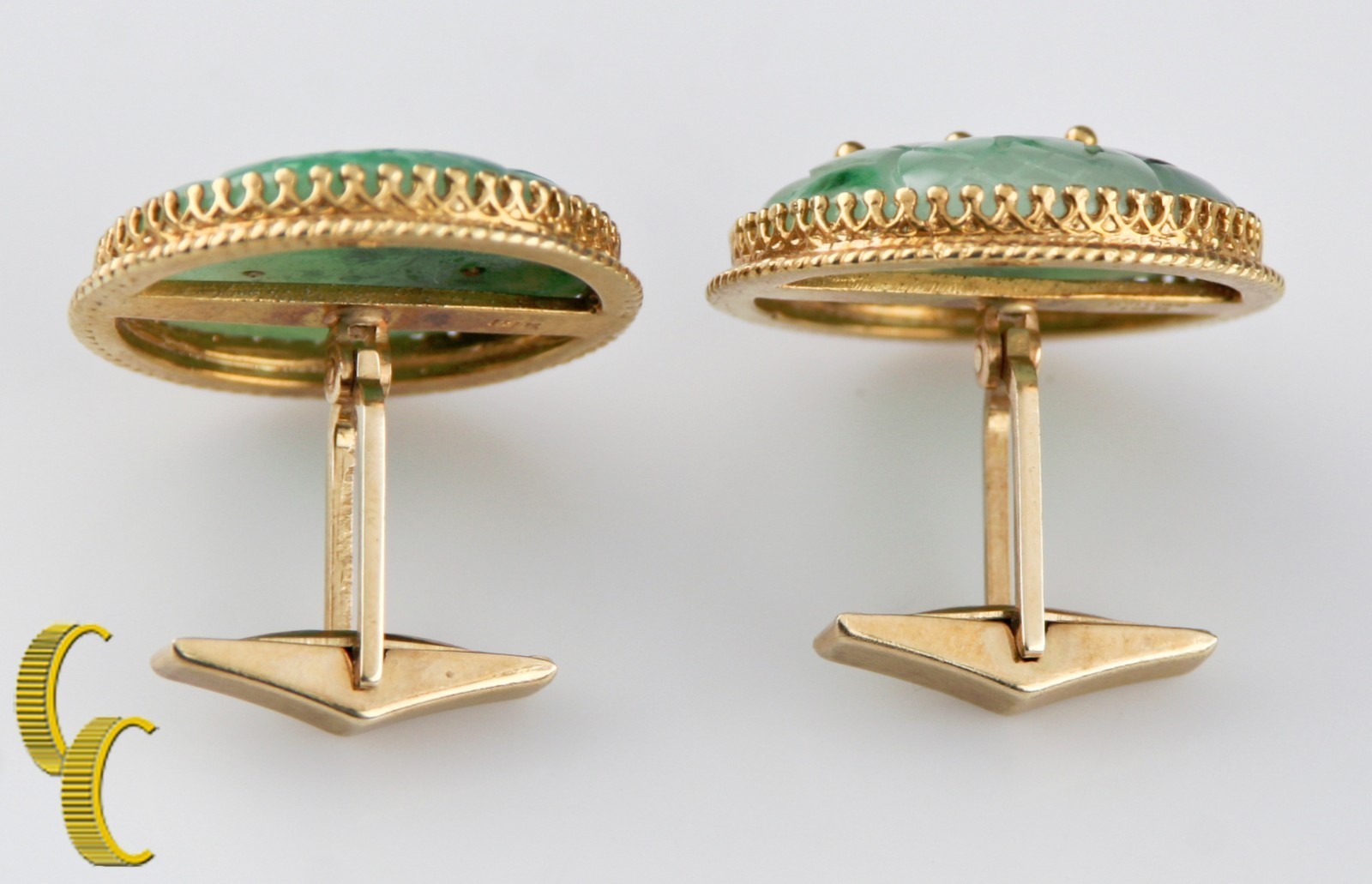 14k Oro Giallo Giada Cabochon Gemelli ( Sopra 100 K) Splendido Regalo