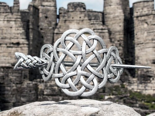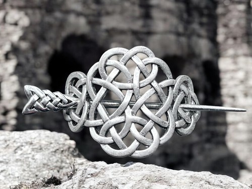 This beautiful Celtic knot hair clip is crafted in silver metal with intricate knotwork, symbolizing eternity and unity. Ideal for adding a touch of Celtic heritage to your hairstyle.