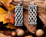 - Celtic Knot Silver Earrings | Vintage Boho Rectangle Dangle | 1” Retro Jewelry