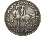 Cuenta con "Centenario Victoria Melbourne 1934-35" en un lado