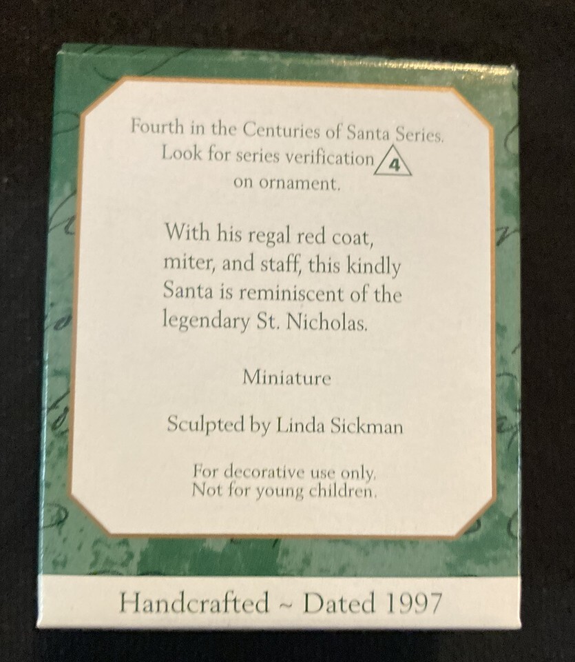 Centuries Of Santa`1997`Miniature-4th In The Santa Series,Hallmark Ornament- New. Condition is New. Shipped with USPS First Class Package.