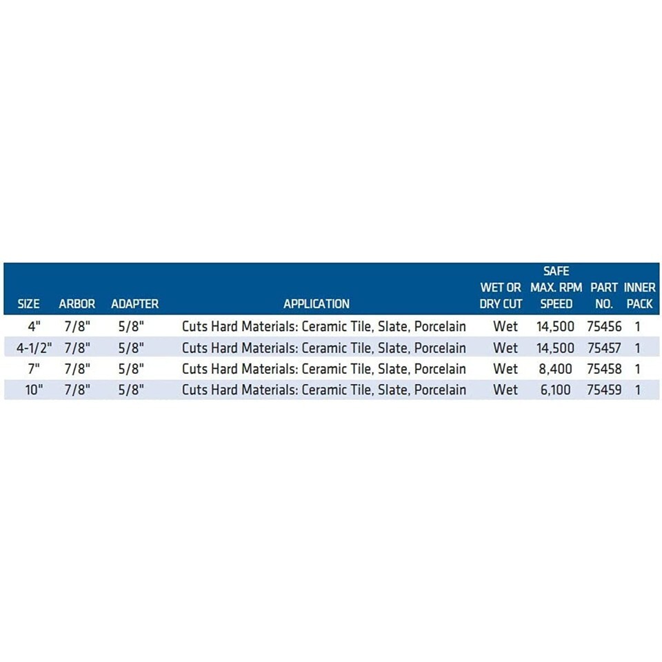 - Century Drill & Tool 75458 Diamond Continuous Rim Blade, 7"