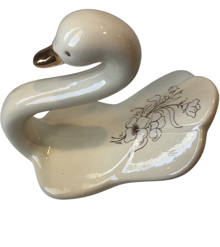 Ceramic Beige Swan With Gold beak Floral Design On Back No Chips