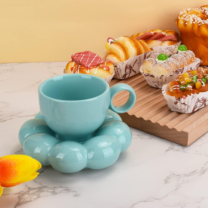 The saucer adopts a sunflower shaped design, which is exquisite and fashionable. The glaze of the tea cup is smooth, the texture is delicate, the appearance is cute, the handle is practical, stable, convenient, and anti slip, saving you time and energy; Beautiful table decoration, you will enjoy a relaxing time.