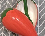 Spice up your kitchen with this three-piece Ceramic Red Pepper Salsa Bowl with Spoon set from Progressive International. The set includes a dipping bowl shaped like a chili pepper, a spoon, and a matching tray. The vibrant red color and shiny finish make it perfect for all occasions and will add a modern touch to your dinnerware collection.