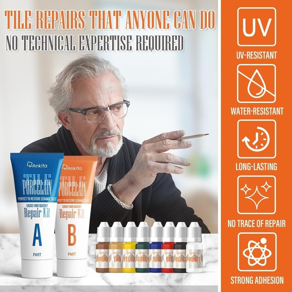 Ceramic Tile Repair Kit - Color Match with Super Strong Adhesion for Quick Fixes