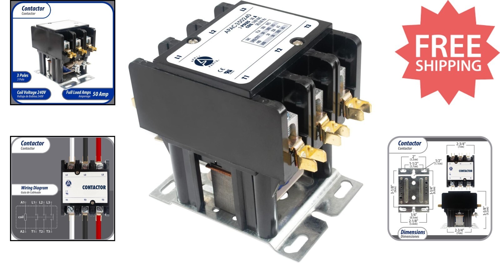 - Certified 3 Pole 50 Amp Contactor - Perfect for AC Compressors & Motors