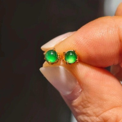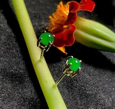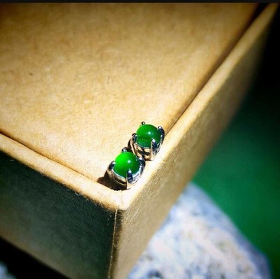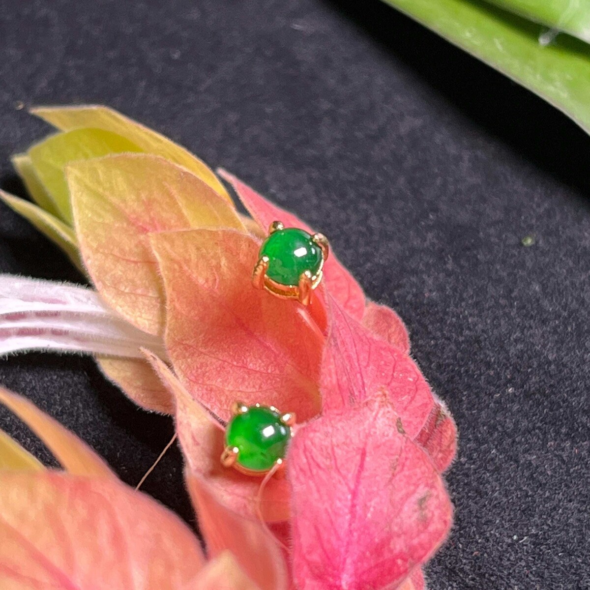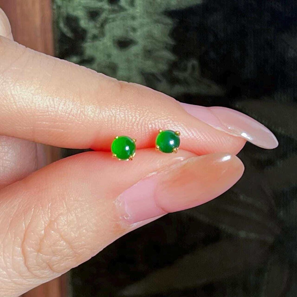 - Certified Natural Burmese Minimalist Simple Stud Imperial Green Jadeite Earring