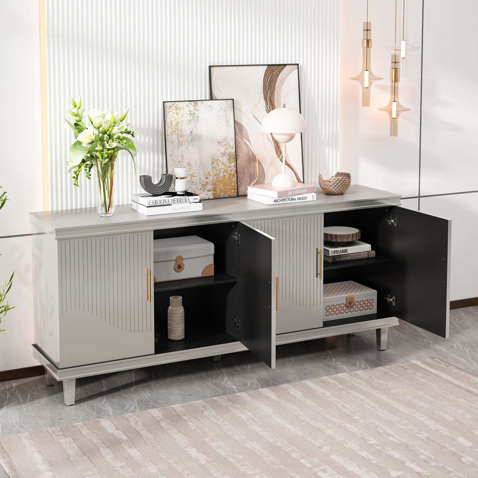 - Champagne Large 4-Door Cabinet: Versatile Storage for Any Room