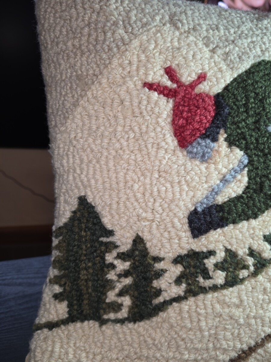 Chandler 4 Corners Laura Megroz 18" DOWNHILL SKIER Hand Hooked Wool Pillow