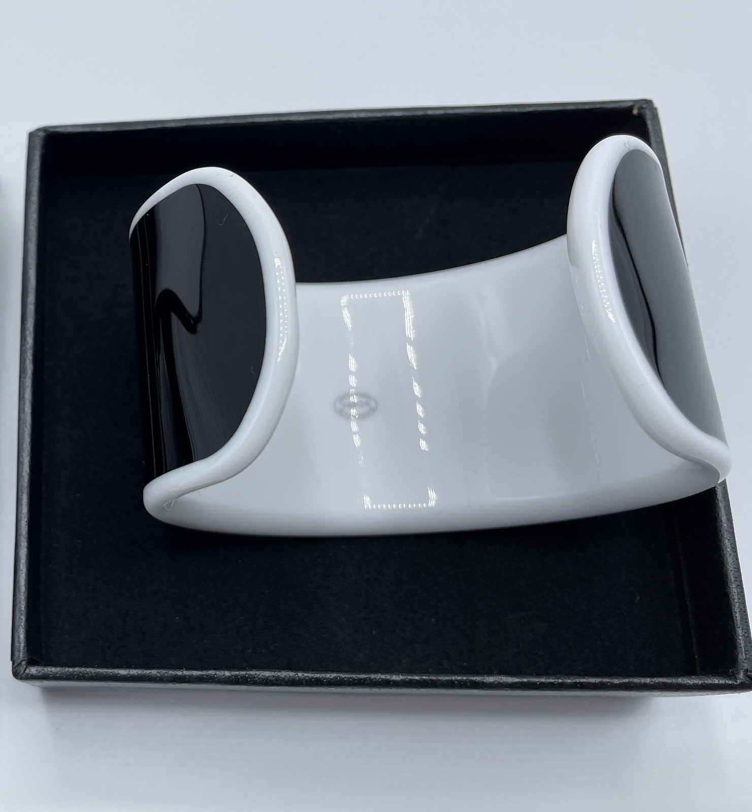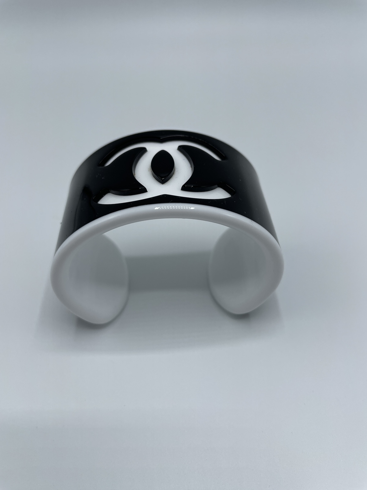 CHANEL BLACK OUTSIDE & WHITE INSIDE CC RESIN SPORTY CUFF BRACELET