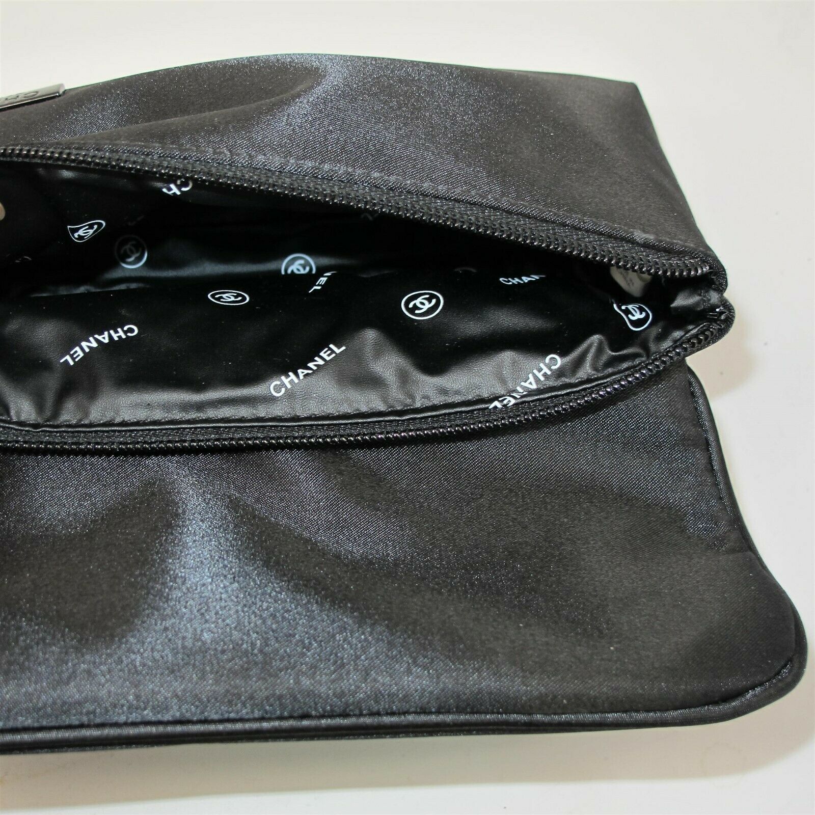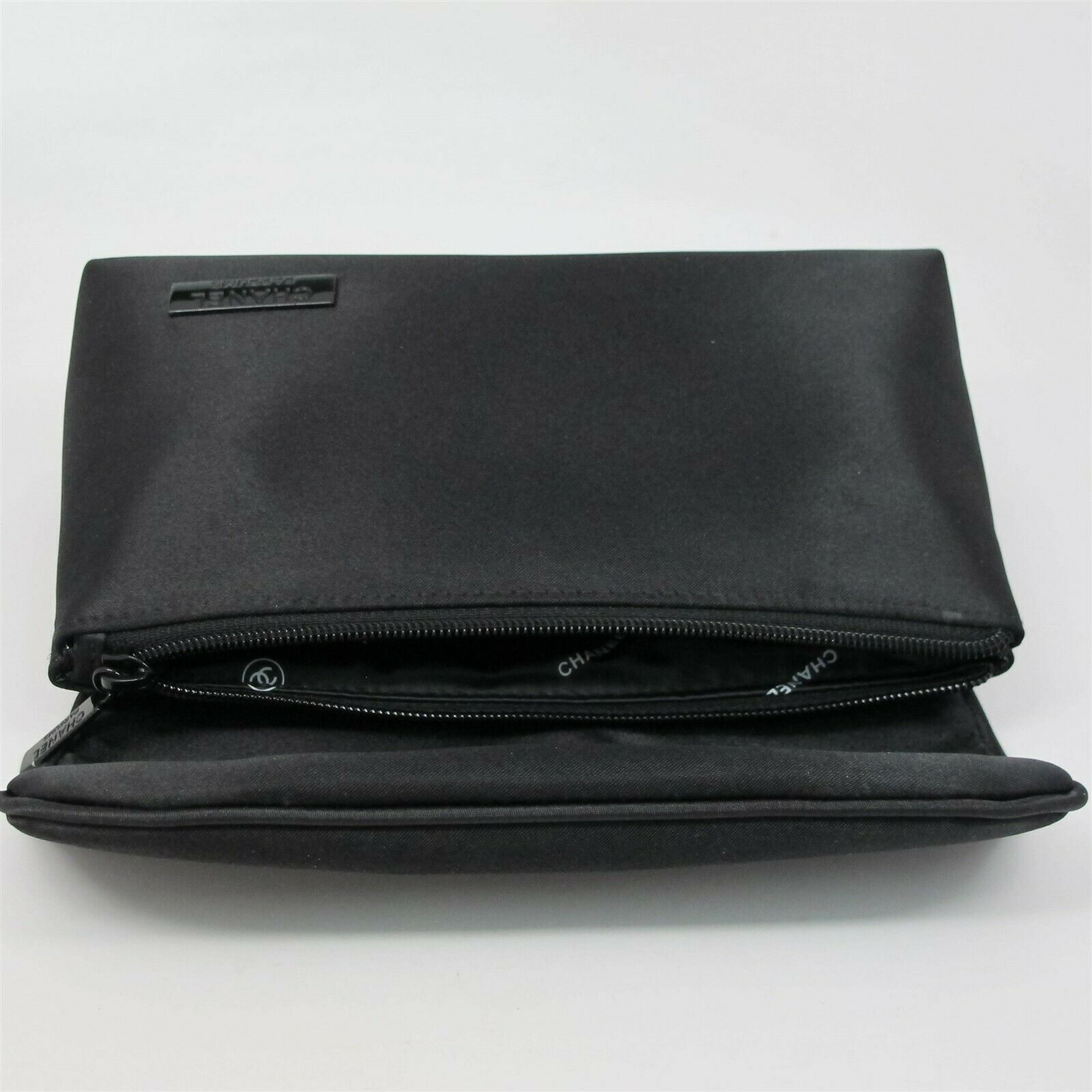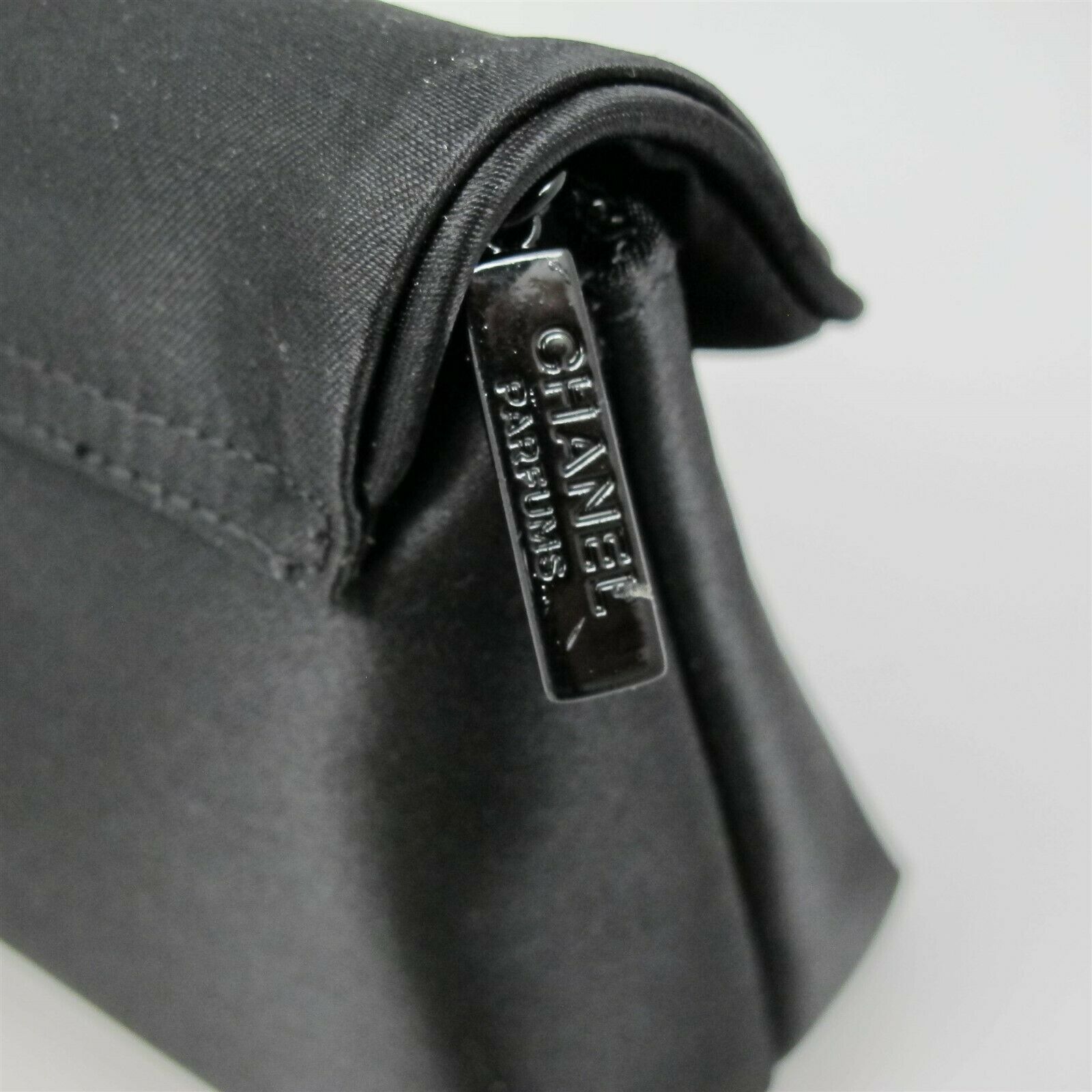 Description: CHANEL Parfums Black Satin Makeup Clutch