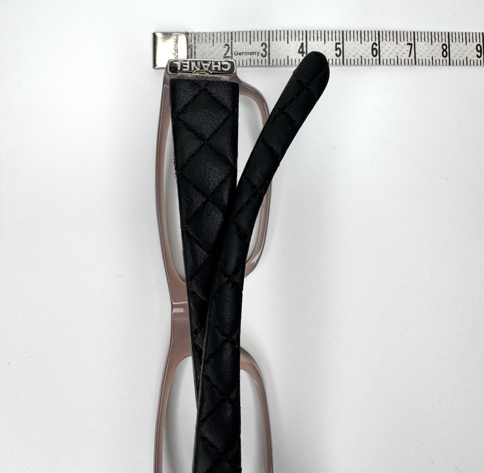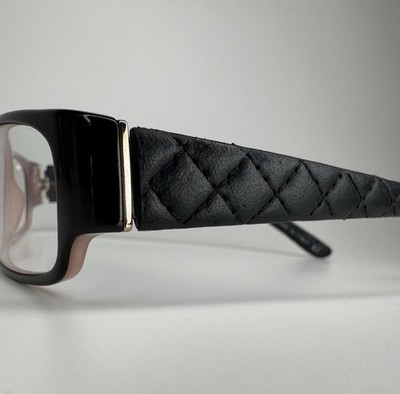 Chanel Reading Glasses Quilted Black Leather Frames Stitched W Case In good pre-owned condition; come with case; Gently worn, very good overall condition; Some micro scratches to plastic parts; Some normal wear to leather; Leather case is in excellent condition; Frames with case only, lenses are not a part of the listing.