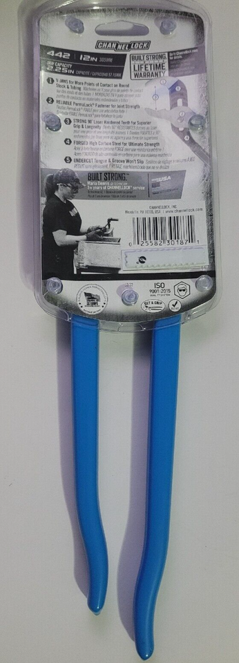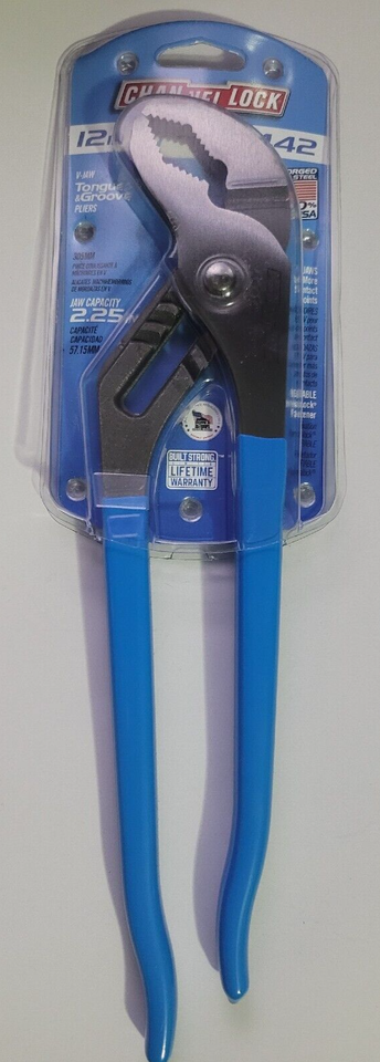 - Channellock 442 Tongue Groove V Jaw 12" water pump Plier Made in USA