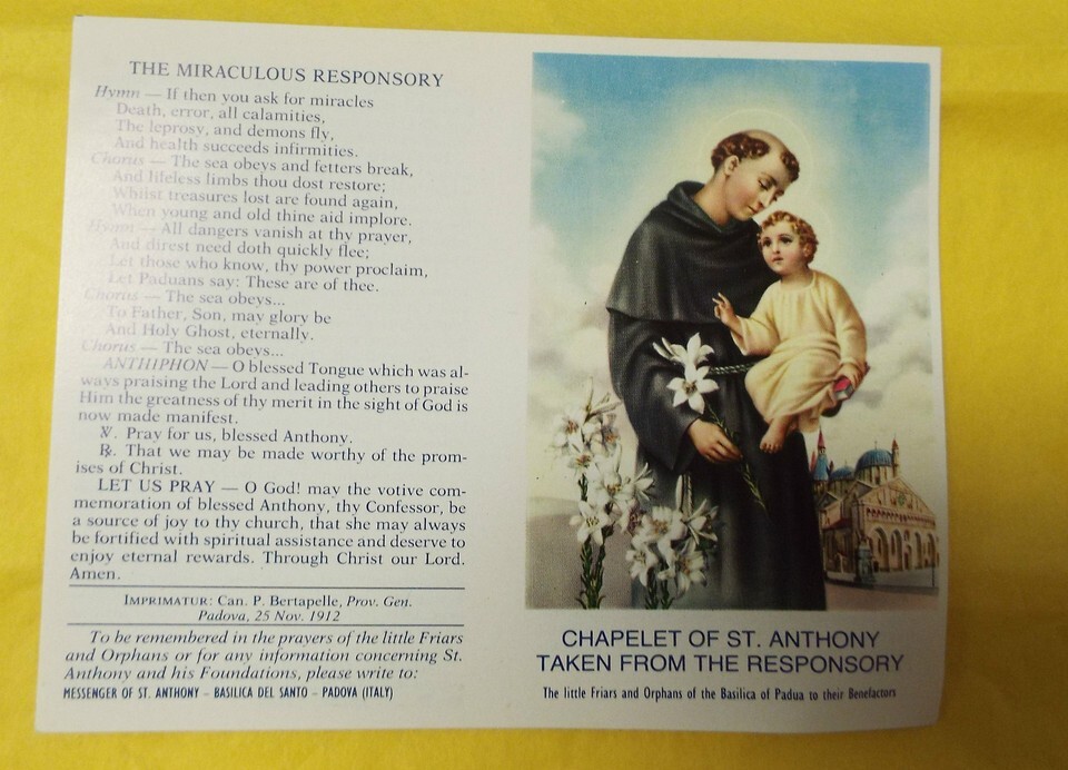 - Chaplet of Saint Anthony of Padua Prayer Card, From Italy, NEW